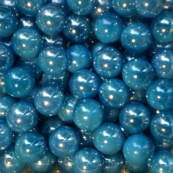 De azuurblauwe parel is een ondoorschijnend lichtblauwe knikker afgewerkt met een parelmoercoating. Deze coating zorgt voor een extra mooie glans.