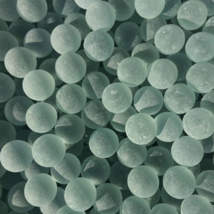 Klein éénkleurig knikkertje die eruitziet alsof het net uit de diepvries is gehaald. Het oppervlak van deze knikkers wordt bewerkt waardoor deze een mat uiterlijk krijgen.