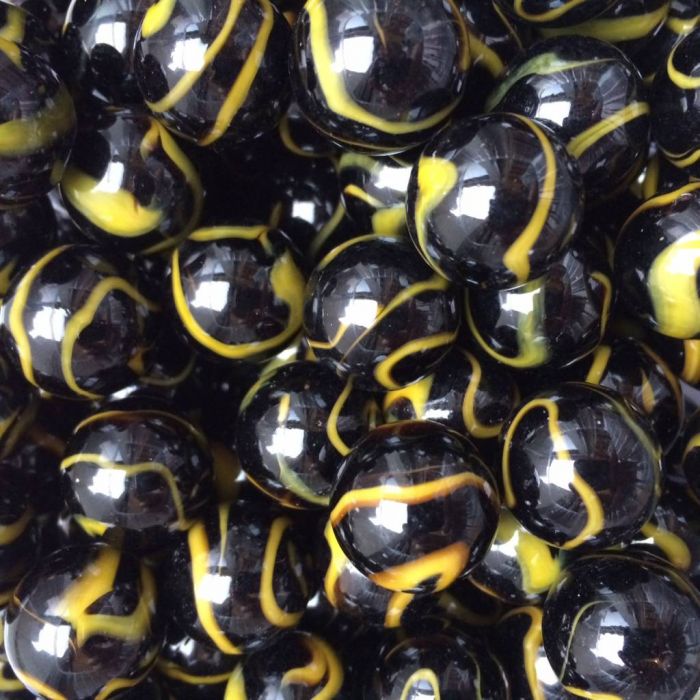 Ondoorzichtig zwarte bollebust met gele lijnen op het oppervlak.