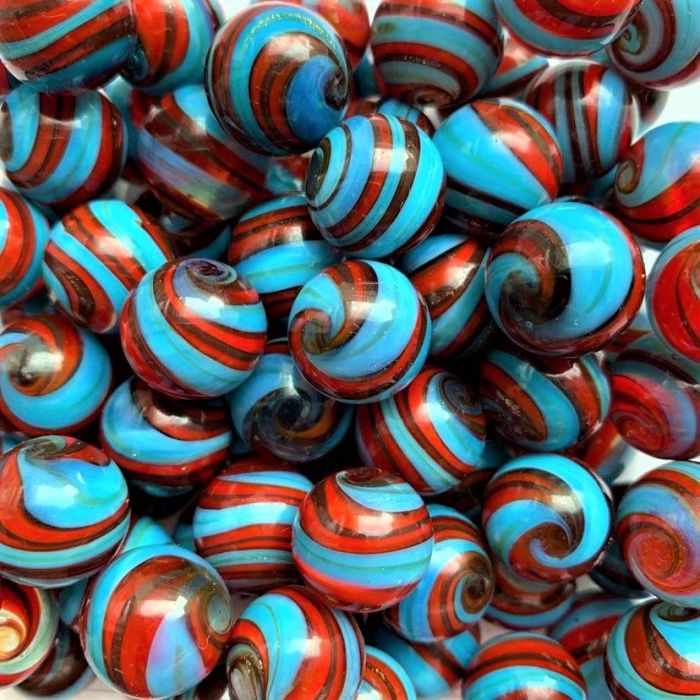 Door de handmatige productie is elke knikker van deze reeks uniek. Afhankelijk van de persoon die de knikker vervaardigde kunnen sommige kleuren bij het ene exemplaar meer aanwezig zijn dan bij de andere of kunnen lijnen bij de ene knikker fijner zijn dan bij de andere.