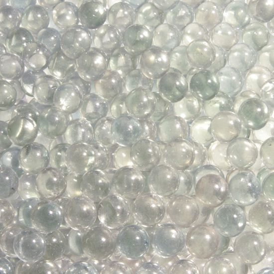 Deze knikkers zijn gemaakt van gerecycleerd glas. Daardoor zijn ze niet 100% kleurloos maar hebben ze een licht gekleurde schijn die je kan kennen van bijvoorbeeld traditionele cola-flesjes.