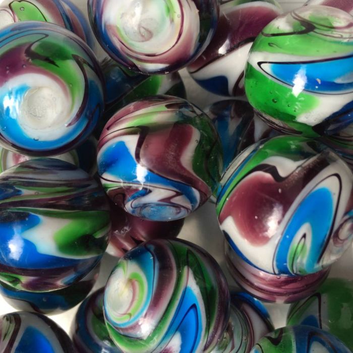 Deze handgemaakte bonk heeft een veelkleurig, psychedelisch patroon.