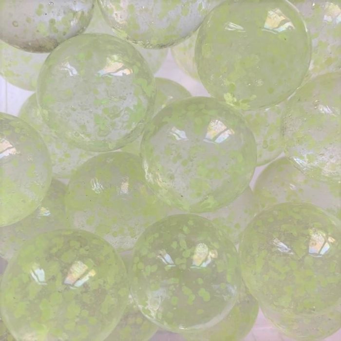 Transparante knikker met binnenin glow in the dark-spikkels.